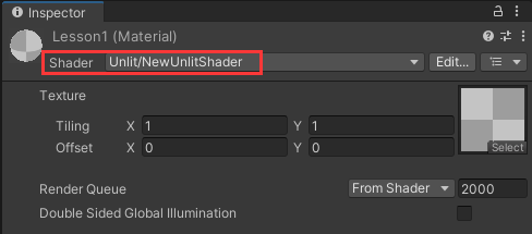 可见材质选中Shader文件Lesson4后,出现了图中所示的内容。